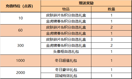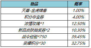 金虎啸春&积分自选礼盒:打开礼包可任意选择以下奖励之一:金虎啸春礼包*1或荣耀积分*30