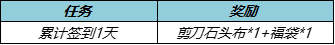 活动期间登录领取局内互动道具,并在局内装备界面购买相应的互动道具,即可在局内进行石头剪刀布小游戏及福袋互动!