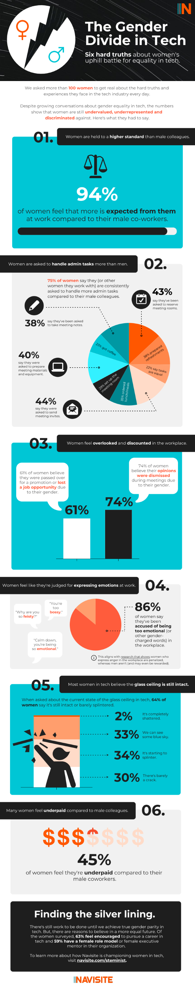 根据一项新的调查,从事技术工作的女性面临着更严格的升职审查,并且比她们的男性同事更经常被要求处理行政工作。来自Navisite的研究调查了100多名科技行业的女性,其中三分之二的受访者在其组织内担任工程或技术职务,并发现94%的人认为她们的标准比男性同事更高。