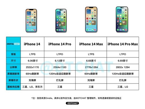 调研报告中显示,苹果今年的iPhone 14依然是由三星、LG和京东方作为供应商,其中京东方、三星以及LG将为6.06英寸的iPhone 14提供显示面板,6.68英寸的iPhone 14 Max和6.12英寸的iPhone 14 Pro将由三星独家供应屏幕面板,而6.69英寸的iPhone 14旗舰机型iPhone 14 Pro Max则由三星和LG共同供应屏幕面板。