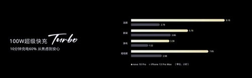 华为nova10系列及全场景新品夏季发布会上公布:华为nova 10 Pro内置4500mAh电池,支持100W超级快充Turbo,10分钟可充电60%,最快20分就能充满电!此外该机还有疾速分享功能,分享文件速度提升60%。
