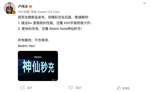 据悉,作为Redmi下半年的“王牌”,全新的Redmi K50 Ultra有望在下个月就与大家见面,并将成为骁龙8+旗舰中最具性价比的机型。更多详细信息,我们拭目以待。
