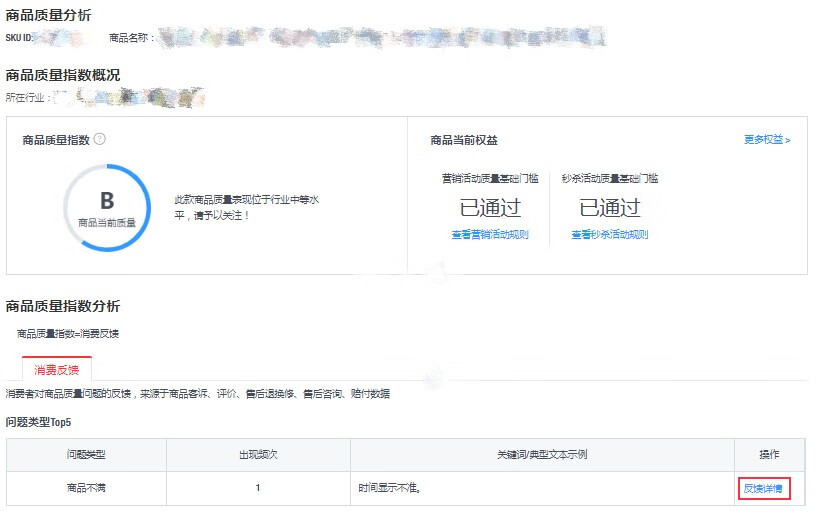 京东提示,对于质量指数高风险商品,消费者反馈的文本商家可通过“店铺品质-我的商品-查看详情-消费反馈-反馈详情”对非商家责任的文本进行反馈,有专人每天审核并上报剔除。