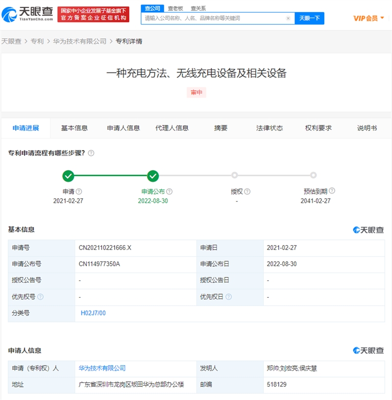 凤凰网科技讯9月29日消息,天眼查App显示,近日华为技术有限公司申请的“一种充电方法、无线充电设备及相关设备”专利公布。