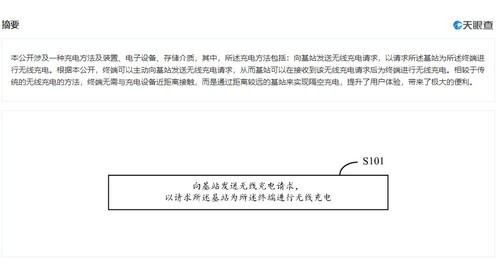 专利信息显示:该专利申请号为CN202180000778.0,申请公布号为CN115398772A。专利申请日为2021年3月22日,申请公布日为2022年11月25日。专利摘要内容为:本公开涉及一种充电方法及装置,电子设备,存储介质,其中,所述充电方法包括:向基站发送无线充电请求,以请求所述基站为所述终端进行无线充电。