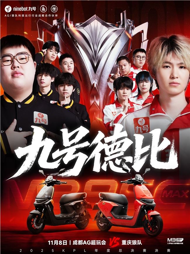 2025年KPL年度总决赛于11月8日在北京鸟巢落幕,成都AG超玩会击败重庆狼队,成就史无前例的七连冠。本届总决赛也被誉为“九号德比”,因为两支会师决赛的顶级战队——AG与狼队,都由九号公司赞助。而这一盛况凸显了九号前瞻性的布局眼光,精准捕捉电竞与年轻文化的深度融合。