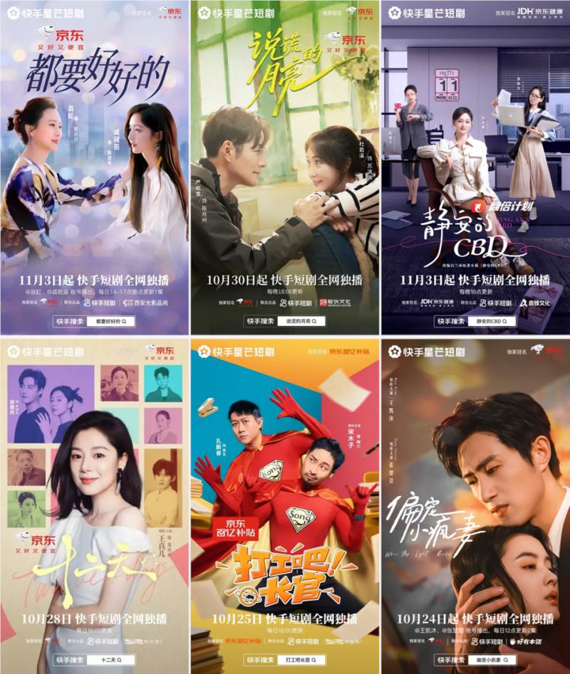 值得一提的是,与《浮生拍卖行》同等品相的短剧,京东联合快手在双11期间共推出7部——翁虹、戚砚笛、陈冠宁联袂呈现《都要好好的》,严屹宽、杜若溪夫妇档带来《说谎的月亮》,何泓姗倾情演绎《静安的CBD》,王真儿用心诠释《十二天》,宋木子爆笑上演《打工吧长官》,王凯沐、张楚萱惊喜搭档《偏宠小疯妻》……多题材、矩阵式、规模化的打法,为京东11.11提供了持续曝光窗口。
